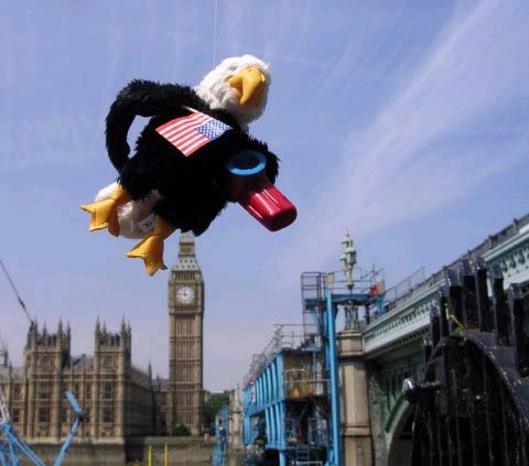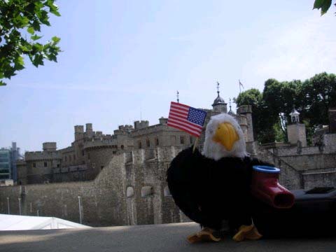 Kazooby outside the Tower of London, shortly before his arraignment for violating British airspace.