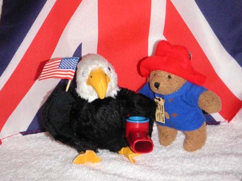 Kazooby and his British cousin, solicitor (lawyer) Paddington Bear, shortly after Paddington secured Kazoobie's release from the Tower of London. |